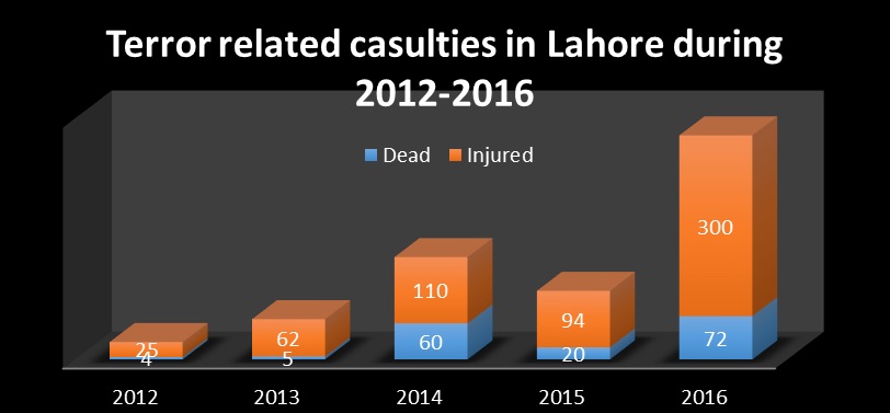 Although comparatively safer than other cities of Pakistan, Lahore has witnessed mass killings from suicide and bomb attacks. The city has witnesses a surge in casualties, despite being a stronghold of the ruling Muslim League.