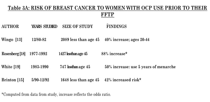 A woman's breast is especially sensitive to carcinogenic influence (ie, cancer producing influence) before she has her first child because the breast undergoes a maturing process throughout a woman's first pregnancy. By failing to measure the effect of OCP use before a premenopausal woman's first full-term pregnancy (FFTP), the Oxford study failed to give data on the one group of women who are most likely to get breast cancer from oral contraceptives, namely, those women who used them before their FFTP (eg, many teenagers and women in their 20s).