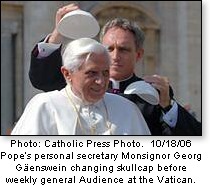 [1] “Vaticano, Guerra per bande,” by Ignazio Ingrao, 1/12/07, published by Panorama.it. Cf “Curia resists papal policies,” Catholic World News, 1/19/07. Cf “Benedict seen as isolated at Vatican,” by John Phillips, The Washington Times, 1/21/07. [Back]