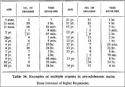 What normal people would believe "scientists" who created a "record" like the chart above? Yet this is a direct copy of Kinsey's "Table 34," in "Sexual Behavior in the Human Male," the fraud that launched the sexual revolution in 1948. This is the deviant "scholarship" Planned Parenthood director Mary Calderone swore to in Roe v. Wade.