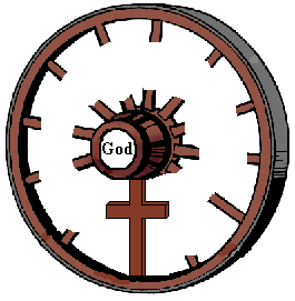 This is a very positive and reassuring image. If it is accurate, it is difficult to understand why the vast majority of people would not, in the end, find their way back to the center. But this is a very subtle denial of the most fundamental doctrine of Christianity, namely Original Sin. We believe that the human race is fallen, broken by sin, over its head in a debt that it cannot hope to repay. In short, man cannot save himself. Recall when Jesus said to his disciples that it is easier for a camel to pass through the eye of a needle than for a rich man to enter the kingdom of God. They said in reply: "In that case, who can be saved?" Jesus gazed at them and said, "For man it is impossible, but not for God: because for God everything is possible" (Mk 10, 26-27). And so a more accurate illustration of the human condition by means of the metaphor of the wheel might be the following: